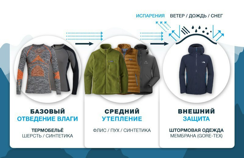 Главная фишка слоев — это удобство, особенно на скитуре. Идёшь вверх — жарко, пуховку можно снять и убрать в рюкзак. На стоянке становится холодно, достаем её и надеваем прям поверх мембраны.